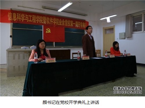 2014年10月17日下午2点,信息科学与工程学院暨软件学院业余党校第一期开学典礼顺利召开,出席本次开学典礼的领导有信息科学与工程学院党总支副书记颜景民,辅导员姜振栋、于运清、鲁瑞丽老师。业余党校副校长邵明超主持了本次开学典礼。