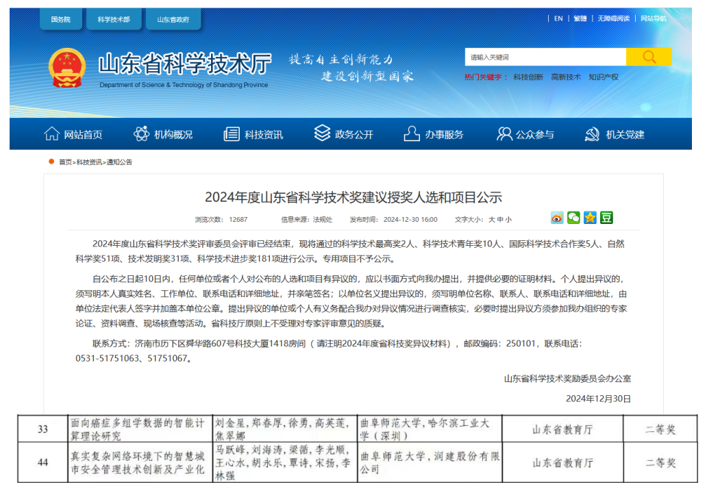 二、再获山东省科学技术奖2项,标志性成果实现新跨越