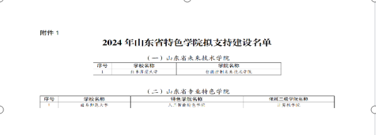 2024年12月19日,山东省教育厅公示2024年山东省特色学院拟支持建设名单,我院申报的人工智能特色学院顺利获批,这是继我院2023年获批山东省大数据智能应用人才教育示范性实习基地以来的连续第二个省级教研平台,不论从数量还是质量上均创建院以来新高,为我院教育教学质量和教学研究能力的持续提升准备了条件。