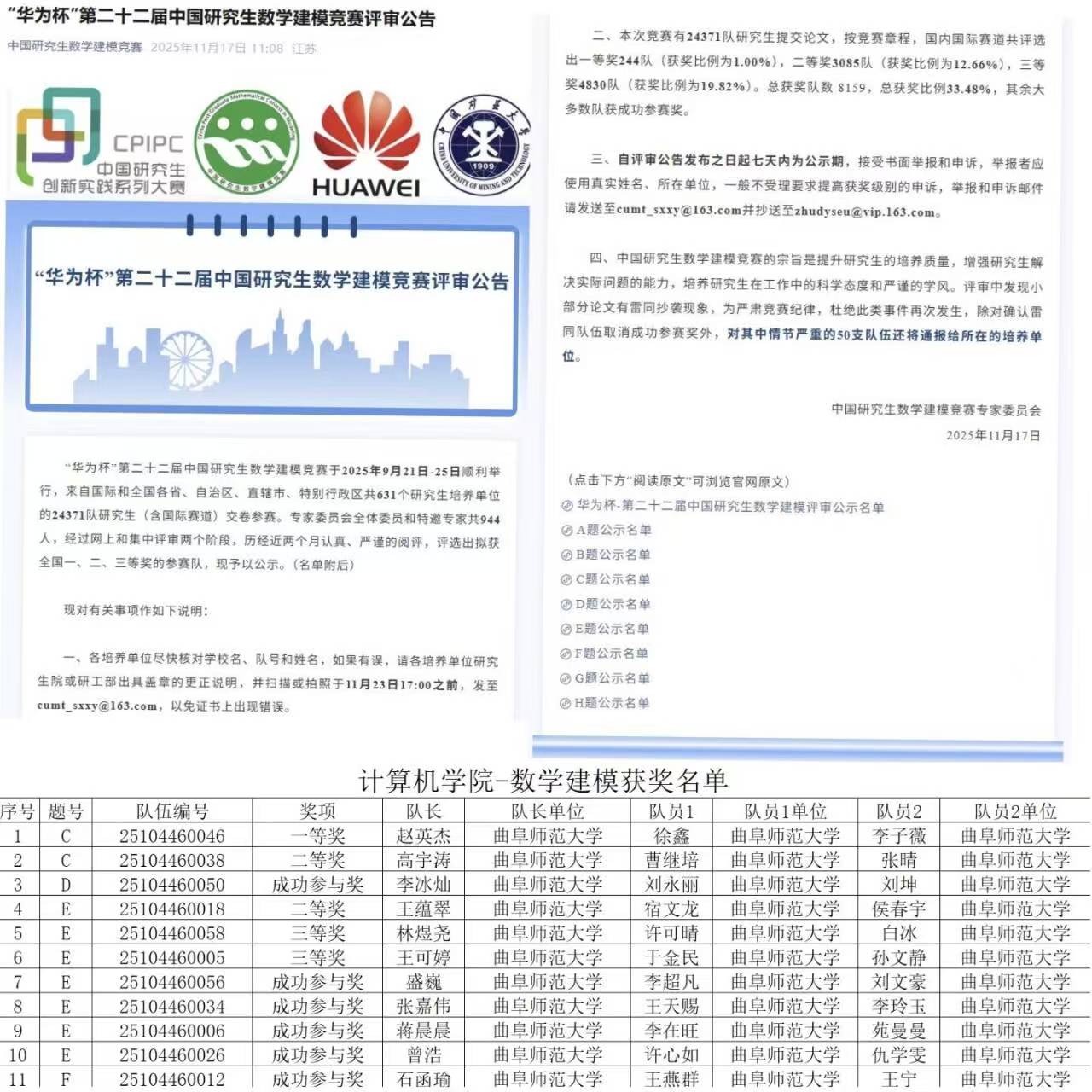 11月17日,第二十二届“华为杯”中国研究生数学建模竞赛获奖结果揭晓,樱花动漫