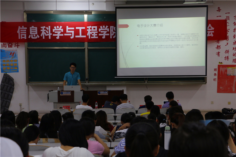 为给参加齐鲁软件设计大赛的同学们提供更多的参赛经验,增加知识储备。2016年6月19日晚7:00,由信息科学与工程学院科创部和学习部联合举办的齐鲁软件大赛交流大会于E303拉开帷幕。经验交流会诚挚的邀请了六位具有参赛经验的师哥向大家分享了他们的宝贵经验。