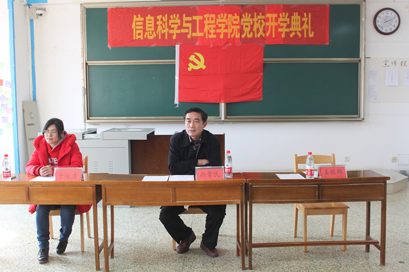 3月11日下午2点,信息科学与工程学院于C406迎来了业余党校第四期开学典礼,打响了院党校培训的第一枪。信息科学与工程学院党总支副书记颜景民、辅导员于运清出席了本次活动。