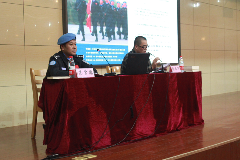 校友张振华和中国第一支赴利比里亚维和警察防暴队新闻官高学德主讲,信息科学与工程学院团总支书记毕文波老师出席并主持了本次报告会。