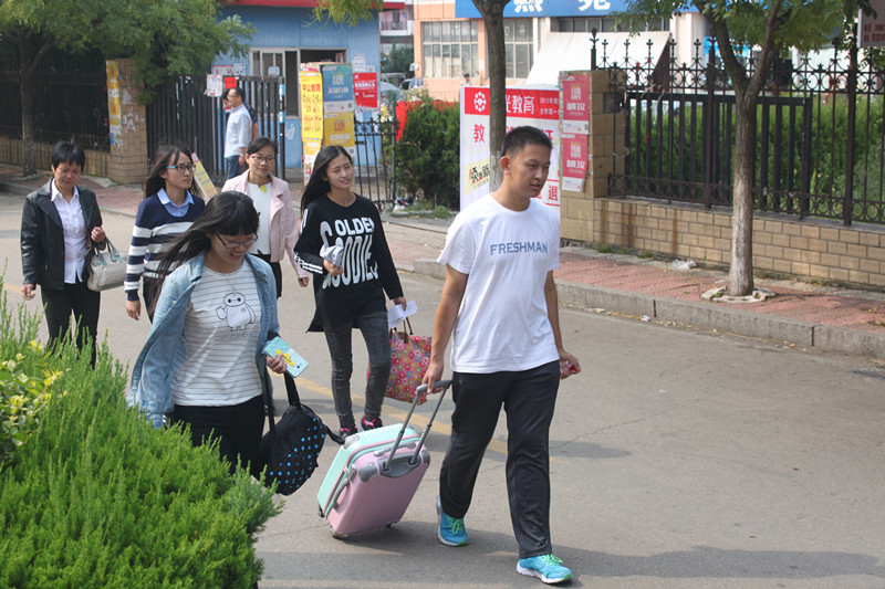 办完需要办理的手续,由2014级的师哥师姐带领师弟师妹走向宿舍园区。2015级的同学被安排在东升园。为了让大家尽快熟悉,一路上师哥师姐热情地介绍了东升园的相关情况,比如宿舍规格、餐厅伙食质量、周边推荐吃食、打水地点、洗澡房价格等。进入园区,道路两旁挂满了欢迎新同学的横幅。在开学前新生的被褥、枕头等生活用品就已经运到了宿舍楼相应的派发站点,在派发站点处新生只需签下自己的名字,就可以领到自己的生活用品,还有师哥帮助搬运被褥。为了给师弟师妹营造一个干净整洁的生活环境,开学前2014级的师哥师姐们还包办了新生宿舍的打扫工作,学院和社区的相关人员也对宿舍的设施、设备进行了检查、检修,排除了安全隐患,给新生提供一个安全、温暖的生活环境。了解到往年同学的反映和今年新生的实际情况,学院今年特别为高个的同学配备了加长版的床,服务更加趋于人性化。