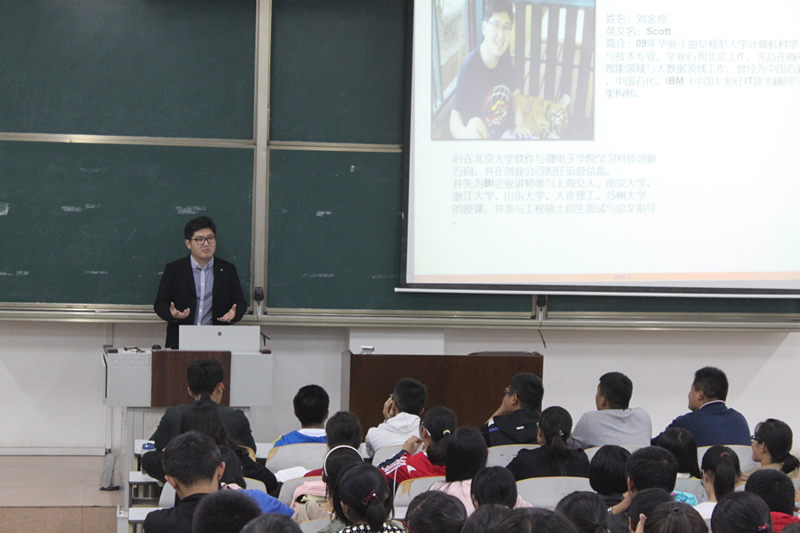 在讲座过程中,校友刘金亮结合自己这几年的奋斗经历,客观而实际地分析了当前计算机行业的发展前景。对于一些新兴产业与名词,他都做出了详细的解释并举出现实事例形象地加以解说。身处信息时代,刘金亮师哥鼓励同学们“敢于站在大数据时代的风口浪尖上”。在问答环节,同学们提出了自己对专业的一些疑问,并向校友寻求专业方向上的指导和帮助。刘金亮师哥都耐心的给予了一一解答,并在讲座后留下了自己的联系方式,希望同学们在专业知识方面遇到困难时,能够随时向他咨询。