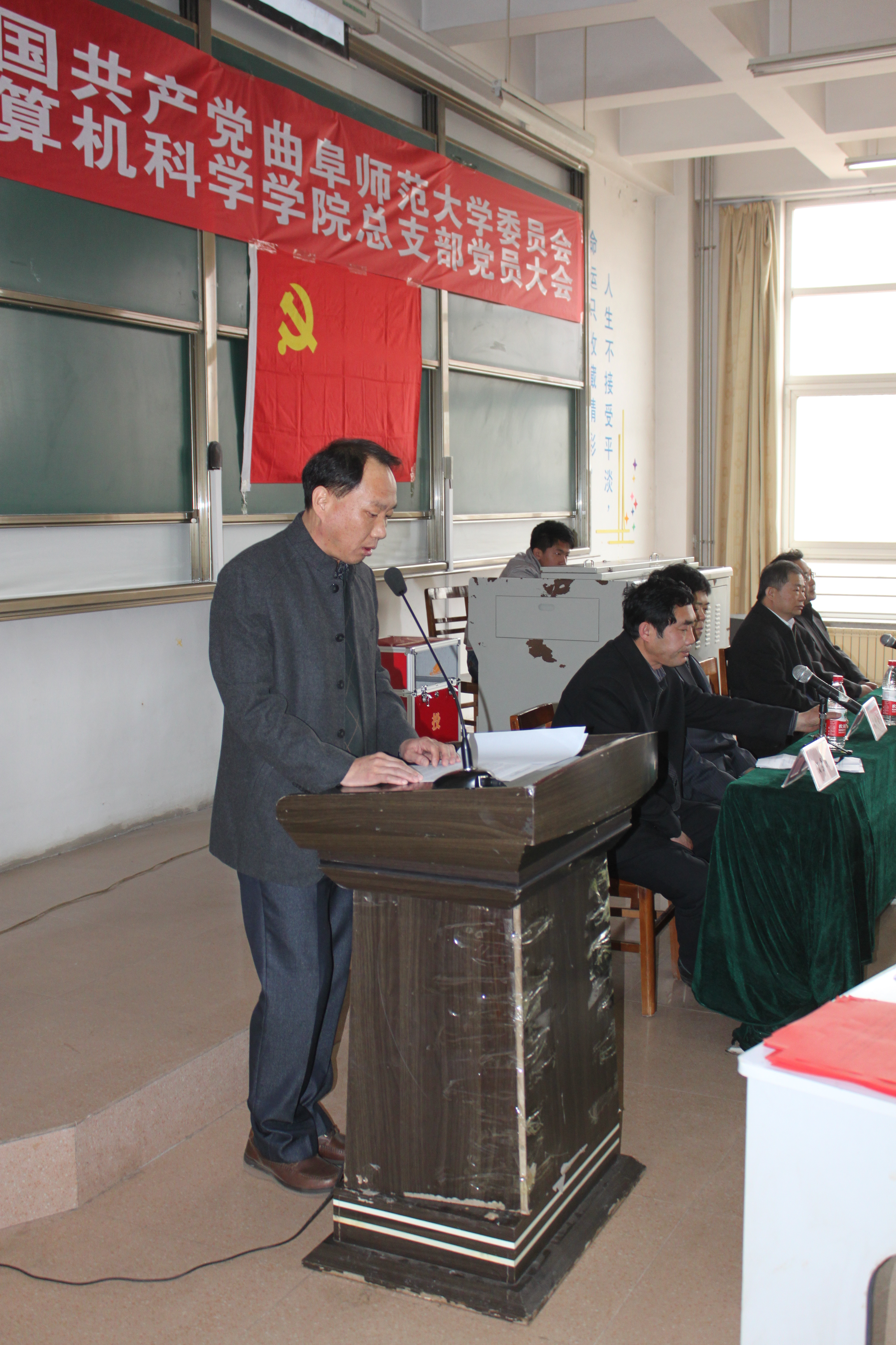 委员会计算机科学学院总支部党员大会在JE104教室隆重召开。计算机科学学院上一届总支成员张书东、曹宝香、颜景民、高仲合、禹继国及学院全体党员参加了大会。大会由颜景民同志主持。