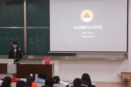 期末考试临近,为激发同学们的复习热情,提高学习效率,信息科学与工程学院团总支学生会学习部于12月29日晚7:30在C405、C406、E303等8个大一班级教室分别举行考前经验交流会。信工学院2012级、2013级国家励志奖学金获得者、校级奖学金获得者等成绩优异的同学应邀出席交流会,为2014级同学们传授考试经验答疑解惑。