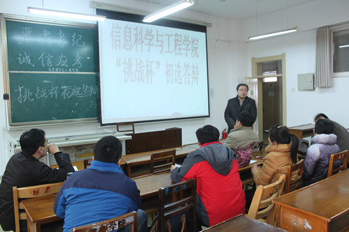 2015年1月8号下午4点,信息科学与工程学院“挑战者”杯初选答辩在C楼408教室顺利举行,樱花动漫
