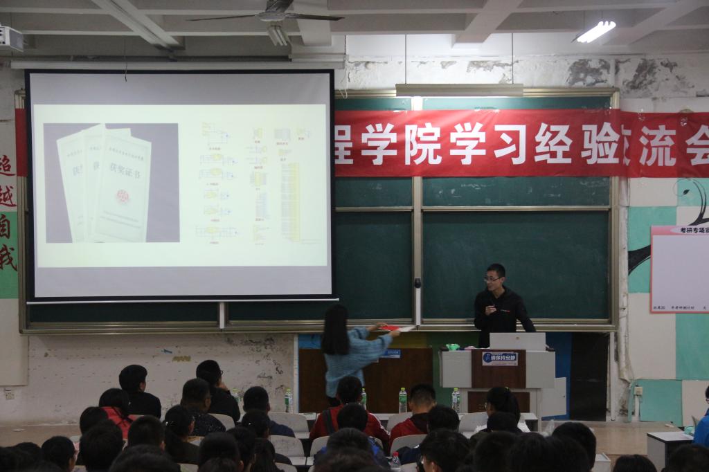 这片土地,他们将在这片阳光土地上迈开自己未来精彩人生的第一步。然而面对陌生的大学生活、学习,17级新生们肯定感到困惑、迷茫。为此,我院学习部和科创部携手开展了17级新生学习经验交流会,让他们能够尽快熟悉大学校园生活和学习。此次经验交流会邀请了我院部分优秀师哥师姐发表演讲,讲述了他们在之前大学生活中参赛的经历,让新生们从老生的经验中找到更适合自己的学习方法,让以后的学习更有目的性。