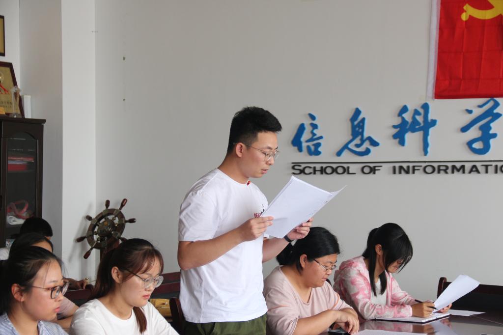 2019年6月1日下午4:30,信息科学与工程学院预备党员纳新暨转正支部大会于JC408顺利举行。信息科学与工程学院党委副书记肖龙航、团委书记毕文波、本科生党支部书记于运清、辅导员鲁瑞丽出席了本次会议,信息科学与工程学院预备党员、党员发展对象及入党积极分子参加了本次会议。