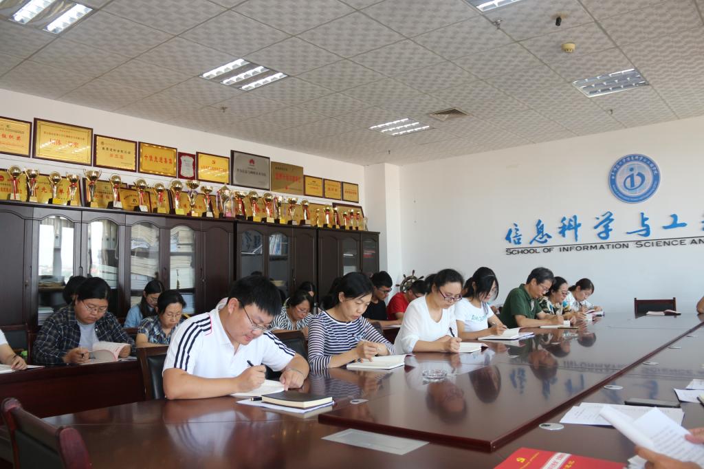 为深入贯彻落实党的十九大精神,加强党员党性教育,9月18日下午,信息科学与工程学院在JC1011顺利开展“不忘初心、牢记使命”主题教育动员部署大会。信息科学与工程学院党委书记张书东、院长助理王茂励、团委书记毕文波、本科生党支部书记于运清、数据科学与大数据系主任祝永志、辅导员鲁瑞丽及全体教师党员出席本次会议,本次会议由学院党委副书记肖龙航主持。