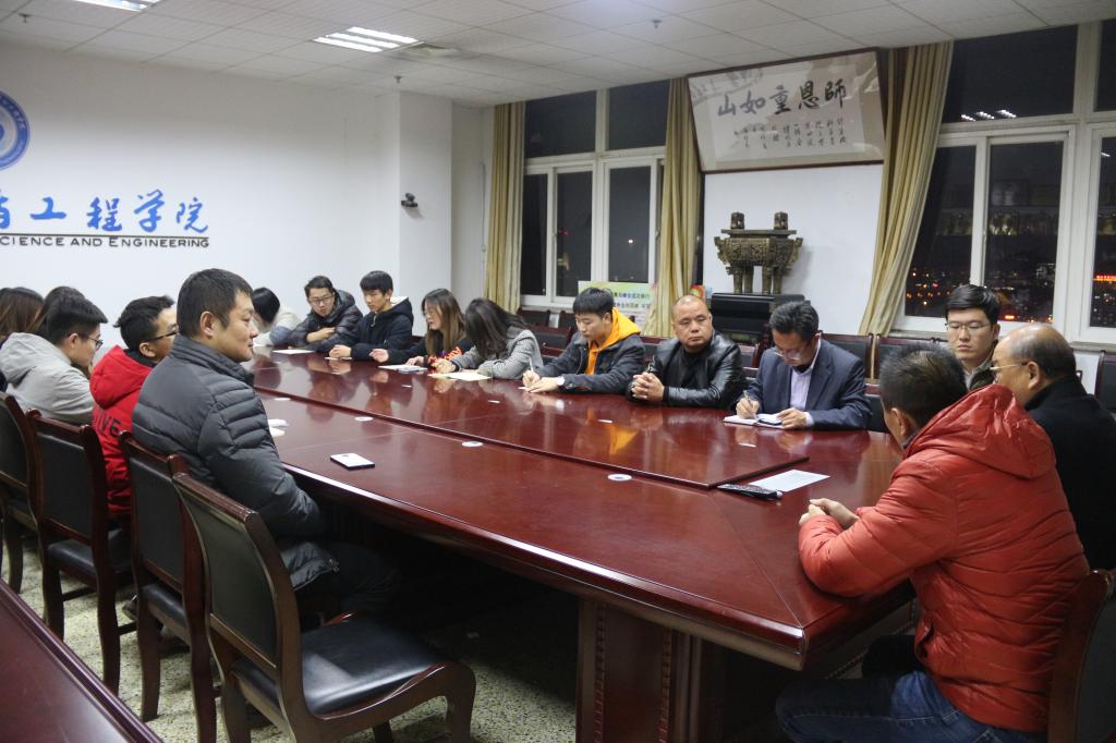 为了进一步夯实创新创业工作基础,推进创新创业工作再上新台阶,11月27日下午5点半,信息科学与工程学院在JC1011召开创新创业工作推进会议,校学生工作处王增圻,信息科学与工程学院党委副书记肖龙航、团委书记毕文波,悠悦易存网络科技有限公司投资方代表宋明韬、聂胜杰,学生家长代表李老师出席本次会议,各项目组成员参加本次会议,本次会议由党委副书记肖龙航主持。