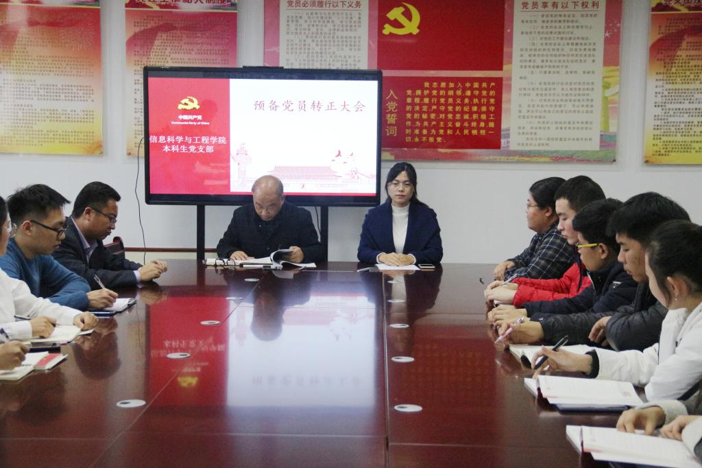 为进一步增强党员队伍建设,为党组织注入新鲜血液,增添新的活力,2019年11月21日下午四点,信息科学与工程学院党员纳新暨转正支部大会于JC1011顺利举行,出席本次会议的领导有信息科学与工程学院党委副书记肖龙航、团委书记毕文波、党支部书记于运清、辅导员鲁瑞丽,预备党员及党员发展对象。本次会议由于运清老师主持。