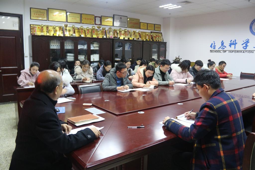 为保障学生考研工作顺利进行,12月17日下午5点30分,信息科学与工程学院于JC1011顺利召开2016级考研工作推进会议,学院党委副书记肖龙航、本科生党支部书记于运清出席了本次会议。