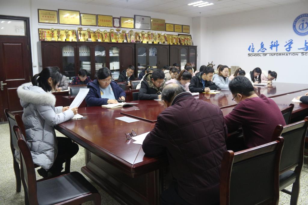 为充分发挥先进典型的带头作用,激励和引导全体师生坚定信念,对党忠诚,奋发有为,1月3日下午5点,信息科学与工程学院本科生党支部在JC1011组织师生党员开展学习卢永根同志先进事迹主题教育活动,信息科学与工程学院党委副书记肖龙航、团委书记毕文波、本科生党支部书记于运清、辅导员鲁瑞丽出席本次会议,全体党员参加本次会议。会议由本科生党支部于运清主持。