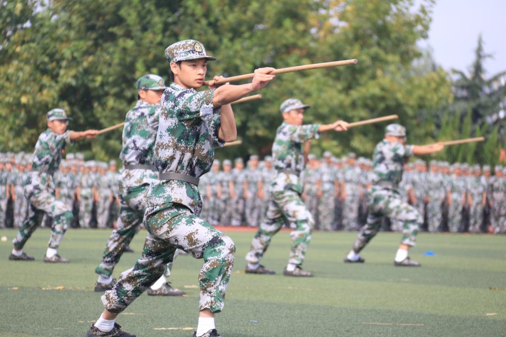 大会首先进行了庄重的升旗仪式,伴随激昂雄壮的国歌,鲜艳的五星红旗冉冉升起、迎风飘扬,全体师生肃立注目,国旗蓝天相映。随后,军训汇报表演正式开始,各连队分模块对本次军训结果做了完美诠释,摆字、旗语方阵恢弘大气,队列方阵整齐划一,心理行为健康操方阵朝气蓬勃、战地急救方阵至美情怀、棍术方阵铮铮热血、内务方阵展现“一屋不扫,何以扫天下”之姿,剑术方阵英姿飒爽、擒敌拳方阵斗志激昂、战术方队手握尖枪、灵活铿锵,展现出樱花动漫
