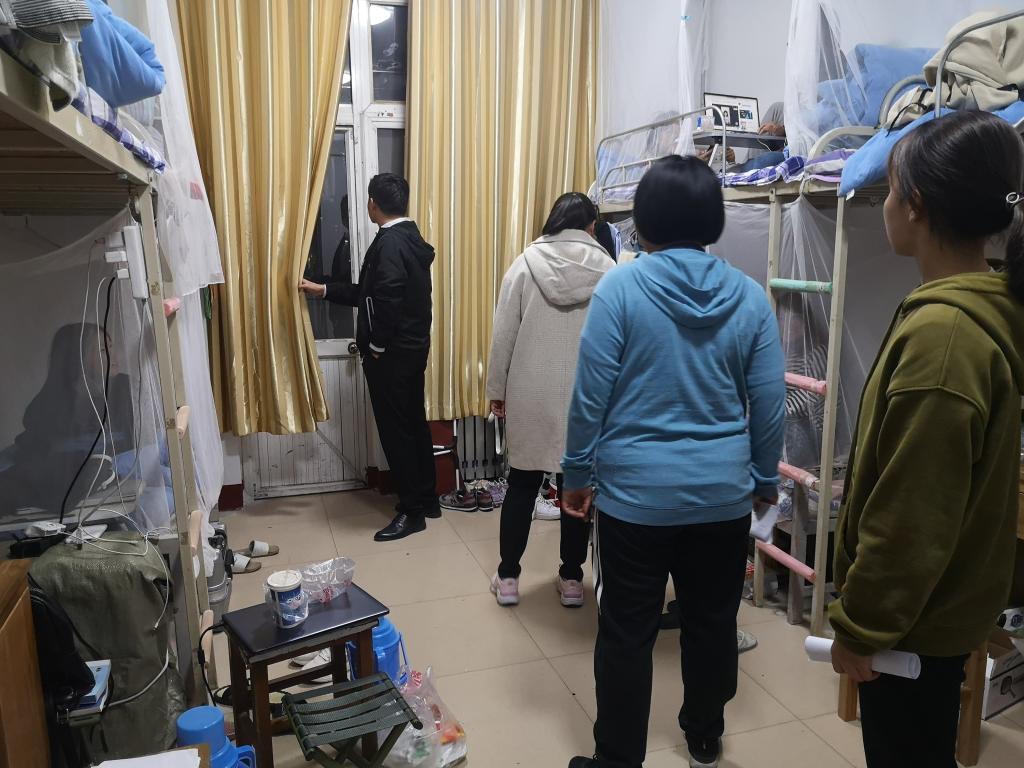检查小组在纪玉超老师的带领下针对宿舍违规电器,宿舍用电安全方面进行重点检查。检查过程中,纪玉超老师指出个别宿舍中的用电风险,如插排的乱接问题,电脑的摆放问题等。同时,针对部分宿舍异味大,不整洁等问题,纪玉超老师叮嘱大家一定注意宿舍要保持干净整洁,门窗要常开,勤洗手,在公共场合戴好口罩。最后,纪玉超老师对检查结果进行总结,同学们将针对这些问题,贯彻落实宿舍管理制度,提高宿舍安全意识。