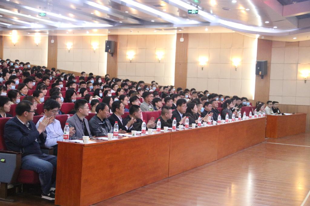 在图书馆报告厅举行2018级考研工作研讨促进会。会议由学院党委副书记肖龙航主持,教务处副处长熊吉忠、学工处副处长郑勇、学工处就业指导中心主任曲涛、网络工程系主任刘效武、计算机科学与技术系主任雷玉霞、辅导员于运清、孙宇、纪玉超、2018级全体同学及部分家长代表参加此次会议。