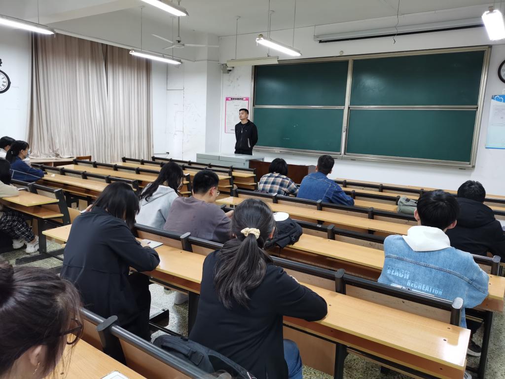 于JC401召开校春季运动会筹备会议,团委学生会例会人员参加会议,2018级辅导员纪玉超主持此次会议。