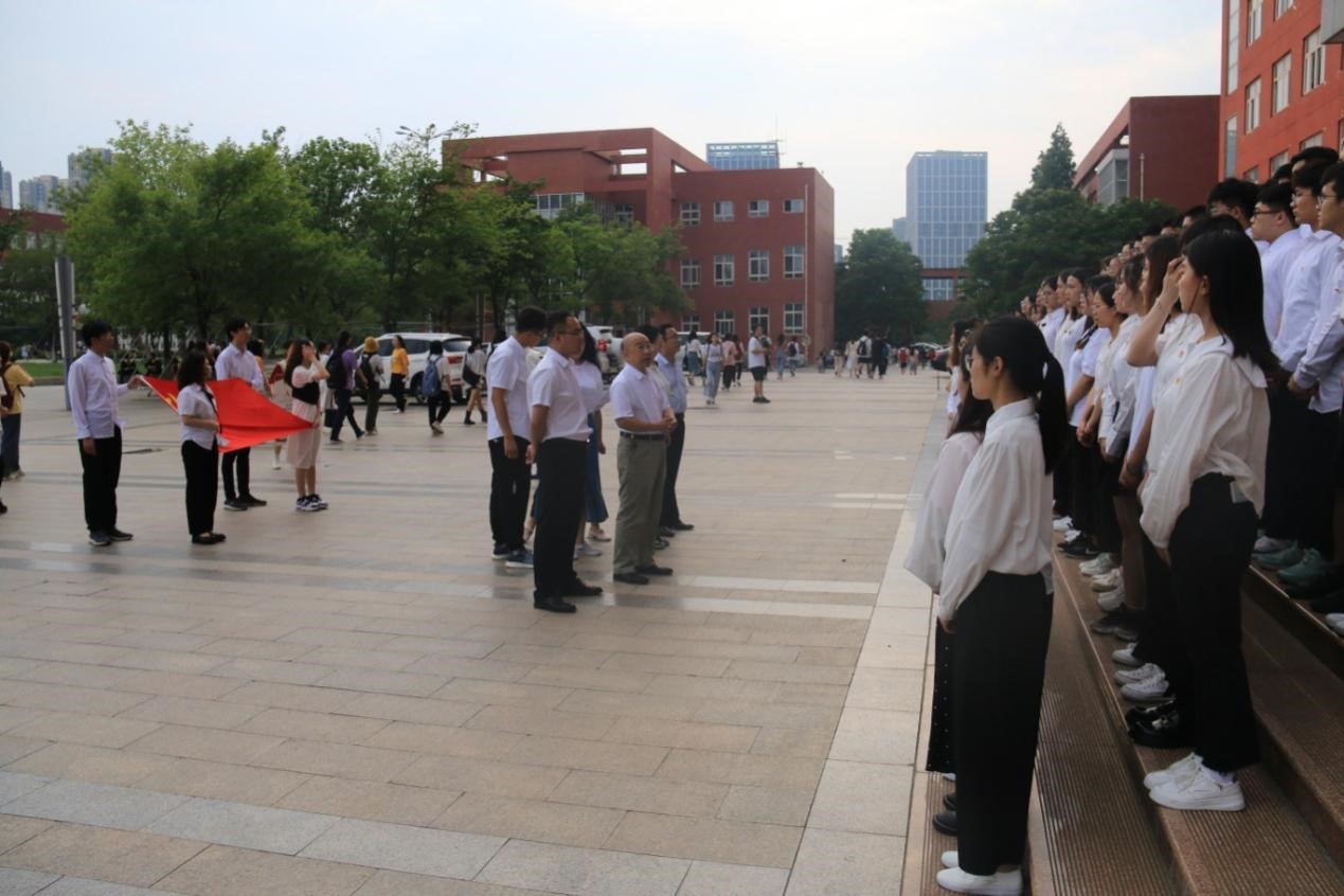 党委副书记肖龙航首先发表讲话,叮嘱每一位毕业生党员,不管在何处都要牢记自己是一名党员,时时刻刻要以身作则,发挥党员的先锋模范带头作用。随后,伴随着《国际歌》的奏唱,全体毕业生党员同学着装统一,佩戴党徽,郑重地举起右手,面对鲜艳的党旗,重温入党誓词。最后,肖书记强调毕业生党员要从党的奋斗历史中汲取前进力量,从重温入党誓词中感悟担当精神,牢记初心使命、砥砺奋斗精神,向先辈先烈学习,向先进模范学习,向身边榜样学习。