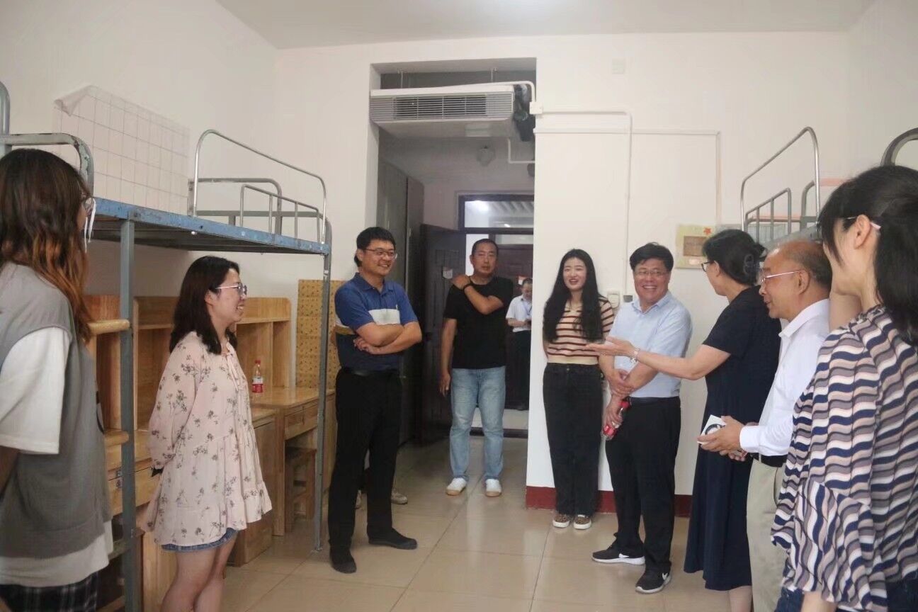 每走进一个学生宿舍,领导、老师都与毕业生亲切交谈,询问毕业生的毕业感受以及离校情况,了解毕业生的毕业去向,与毕业生畅聊未来的发展规划,为他们送去了学校、学院最真切的关怀和最衷心的祝福。扈庆学书记鼓励毕业生在新的起点、新的岗位上继续努力奋斗,不论是继续深造还是进入新的职业岗位都要坚持努力学习,既要敢于立鸿鹄之志,又要做到足履实地,以优异的成绩为母校争光,争做新时代的奋斗者。