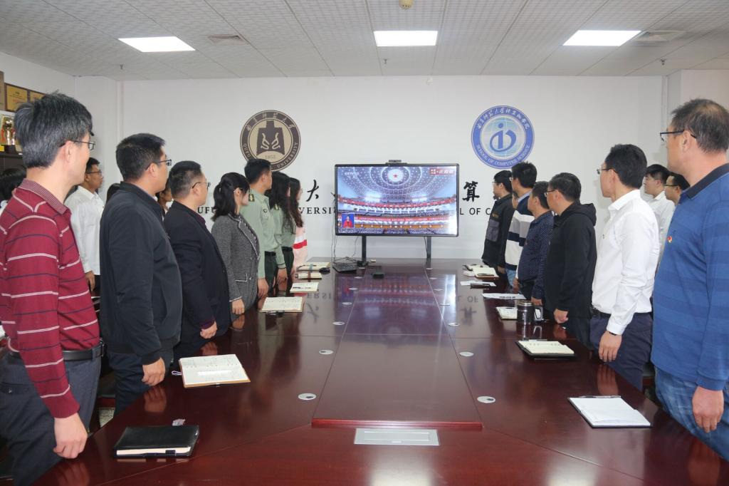 领导班子和各支部党员代表于JC1011会议室收看直播,樱花动漫
