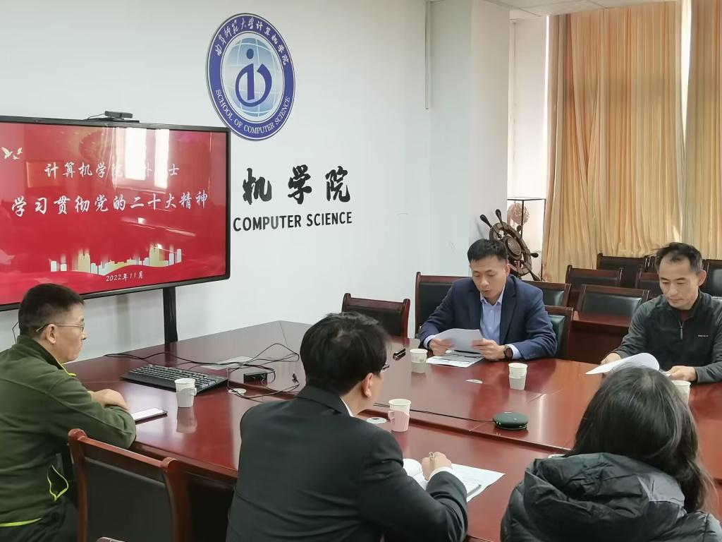 学院党委副书记孙旭春领学党的二十大精神,带领大家重温了党的二十大的主题,高举中国特色社会主义伟大旗帜,全面贯彻新时代中国特色社会主义思想,弘扬伟大建党精神,自信自强,守正创新,踔厉奋发,勇毅前行,为全面建设社会主义现代化国家,全面推进中华民族伟大复兴而团结奋斗。