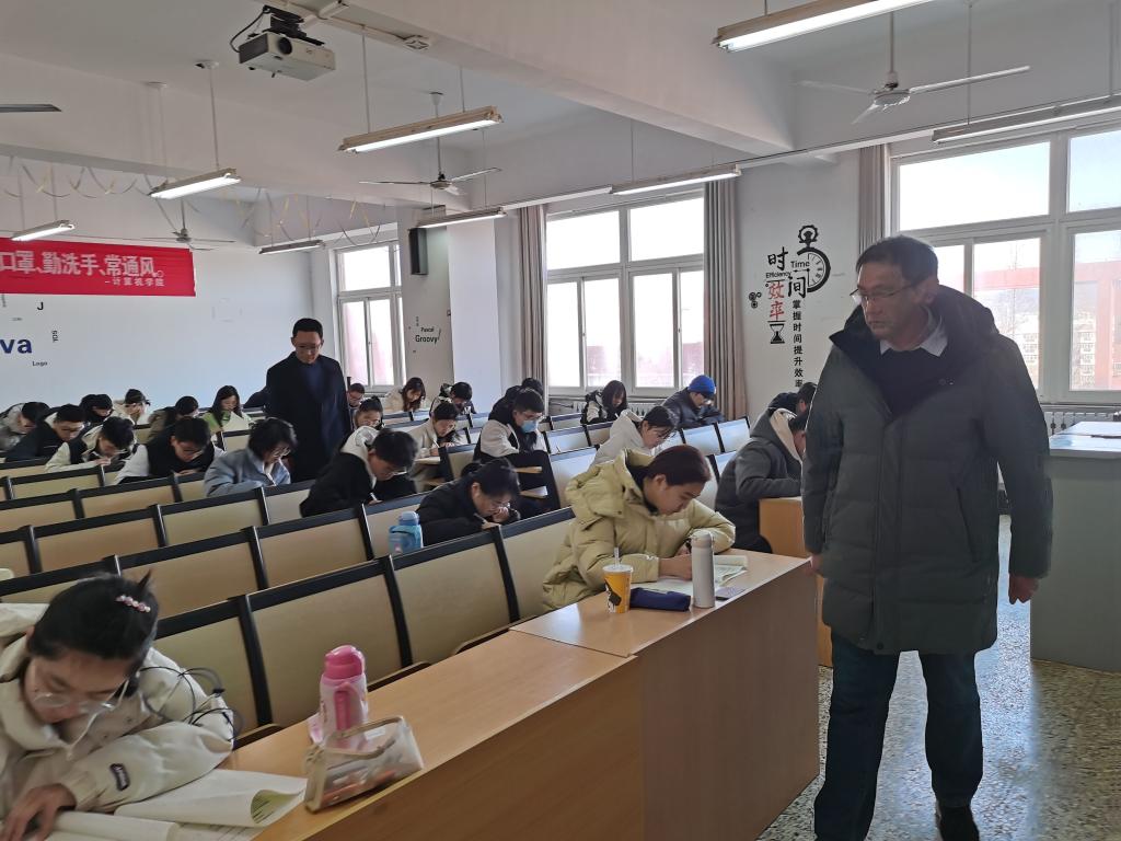 党委书记于健、院长李光顺、党委副书记孙旭春、副院长刘效武、尚军亮深入考试现场进行巡视。2022-2023学年第一学期期末考试推迟至本学期第一周进行,从2月13日开始,2月18日结束。