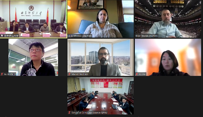 计算机学院相关负责人、国际交流合作处全体人员,塞勒姆州立大学全球参与副教务长Julie Whitlow博士及相关负责人等参加会议。