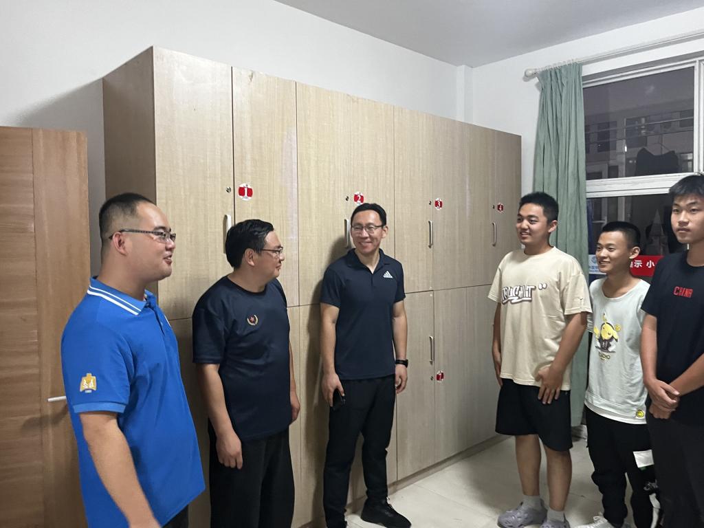 为深入了解2023级新生入住情况、引导新生更快适应大学生活,2023年9月9日晚,樱花动漫 党委书记于健、院长李光顺、副书记孙旭春、副院长刘效武、团委书记于运清、本科生辅导员刘兆宇、纪玉超、孙泽玮、杨丹丹走访2023级新生宿舍,向新生们表达问候与关怀。