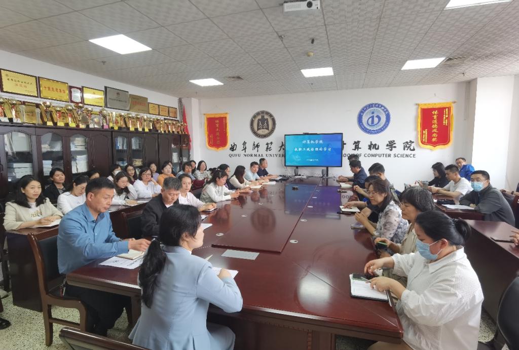 于JC1011召开教职工政治理论学习会议。党委书记张明洁主持会议,全体教职工参加会议。
