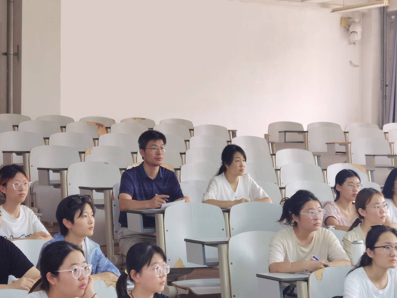 课堂上,学院领导们专注听课,仔细记录授课教师的教学设计、授课环节以及教学内容,关注学生到课情况、学生学习状态,并认真填写听课记录表,对授课教师的课前指导、教学方法、教学能力以及教学效果进行评价。从听课过程中发现,各门课程任课教师都高度重视开学第一课,提前到达教室做好教学准备,授课态度认真,师生互动良好,课堂教学氛围浓厚;学生精神饱满、认真听课,课堂秩序良好;教学设施配备到位,卫生良好,教学状况井然有序。