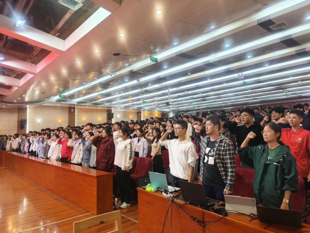 的一员,也寄托了学院对他们的殷切期望与祝福。接着,在新生代表张静如的带领下,全体新生进行了青春宣誓,表达自己对未来的坚定信念与不懈追求。