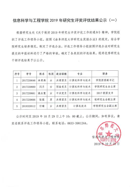 下一条: 信息科学与工程学院2019年研究生国家奖学金评选结果公示