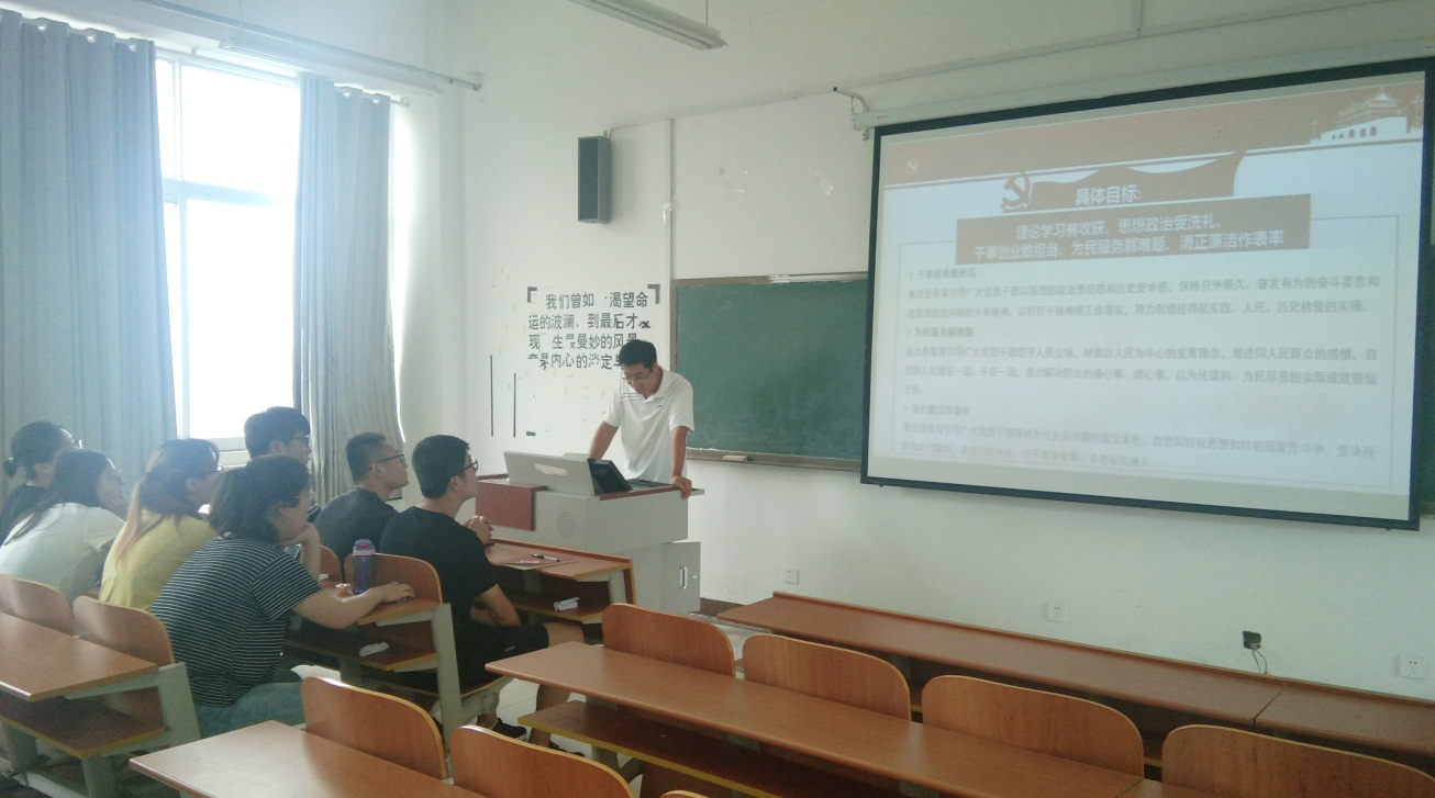 2019年7月16日下午,信息科学与工程学院研究生党支部于S410教室开展“学习习近平总书记在‘不忘初心、牢记使命’主题教育工作会议重要讲话精神”主题党日活动。会议由研究生党支部书记尚军亮老师主持,全体研究生党员参加本次会议。