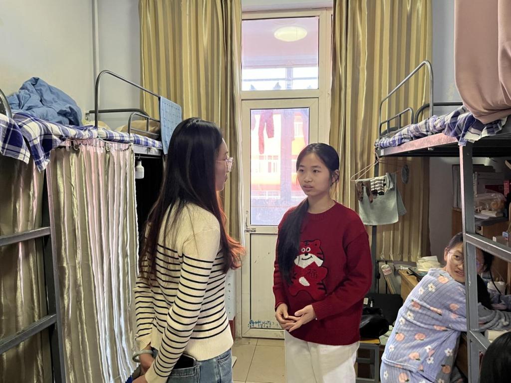 团委书记刘兆宇、辅导员杨丹丹走进学生宿舍,开展青春向党,“宿”说担当主题思想宣传活动。
