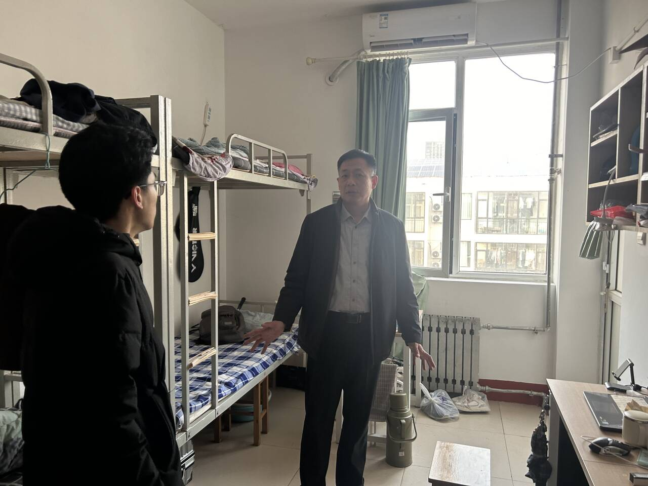 走访中,老师们与同学们一同回顾年度学习生活成果,肯定大家在学业、实践、思想等方面的进步,并针对期末考试、寒假实践等安排提供指导,提醒合理规划时间,兼顾学习与休息,鼓励同学们在寒假参与家务劳动、志愿服务等实践活动,在劳动中锤炼品格、增长才干;同时强调寒假出行安全、疫情防控等注意事项,叮嘱大家做好个人防护,平安过节。同学们主动分享年度感悟与未来目标,老师们逐一给予鼓励与期许,宿舍内暖意融融。