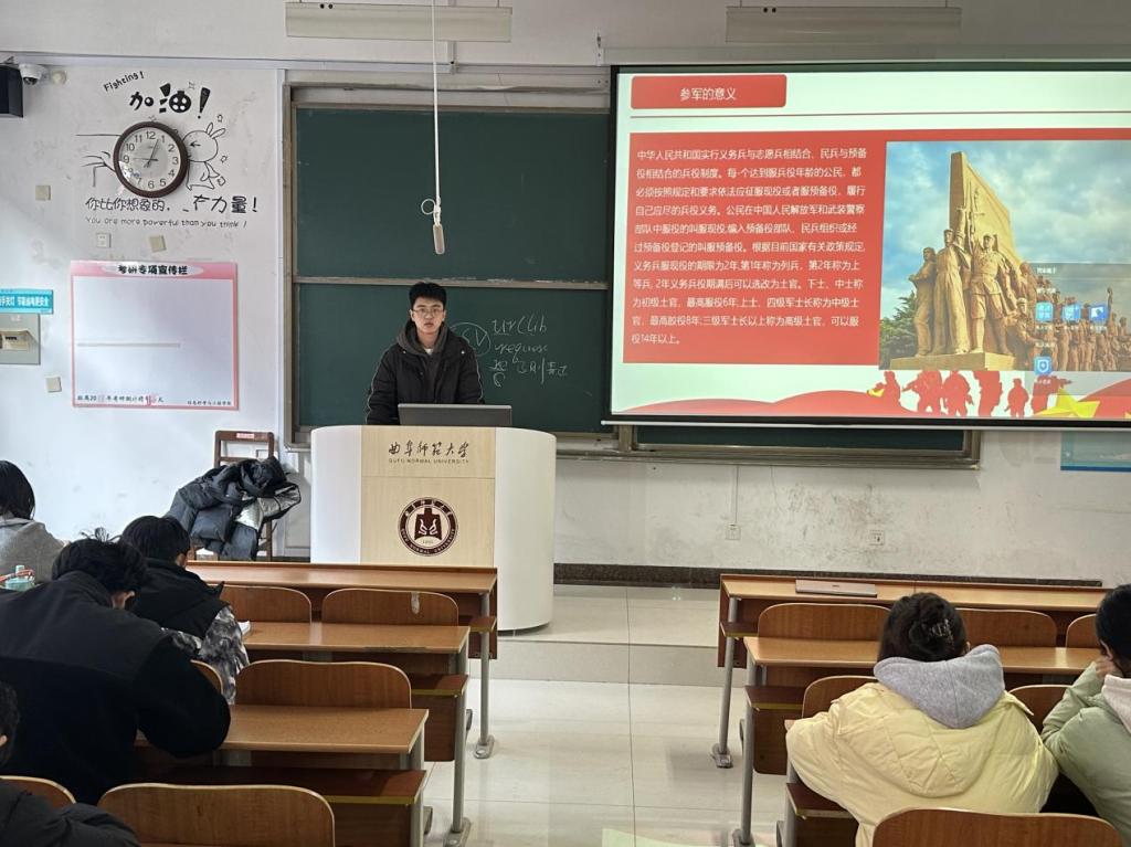 将征兵宣传教育列为学生工作重点,开展征兵工作专题宣讲会,精准助力学生了解军旅生涯、响应国家号召。