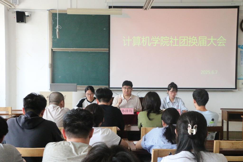 于C412成功举行社团换届大会。辅导员孙泽玮、团委副书记艾姜欢、社团管理部部长董嘉慧出席,社团新老成员参加。