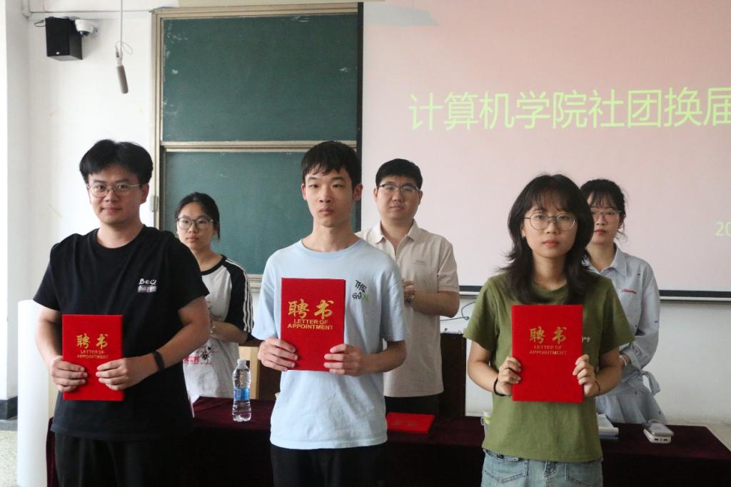 大会进入尾声,孙泽玮、艾姜欢、董嘉慧依次为新任社长们颁发聘书。每一位新任社长接过聘书时,脸上都洋溢着自豪与责任,这小小的聘书,承载着的不仅是一份荣誉,更是一份沉甸甸的责任。