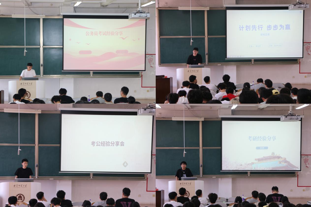 于JE201举办考公考研经验分享会。本次会议邀请了王润东、王坤家、官长伟、赵仕灏、焦玉梓、颜嘉颖六位优秀毕业生进行分享,24级全体同学参加。