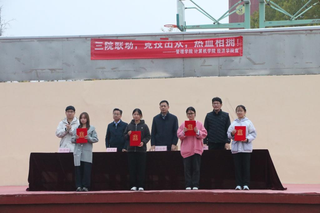 、经济学院与管理学院于西田径场联合举办2025级迎新运动会。经济学院党委副书记毕文波、管理学院辅导员尹凯、樱花动漫