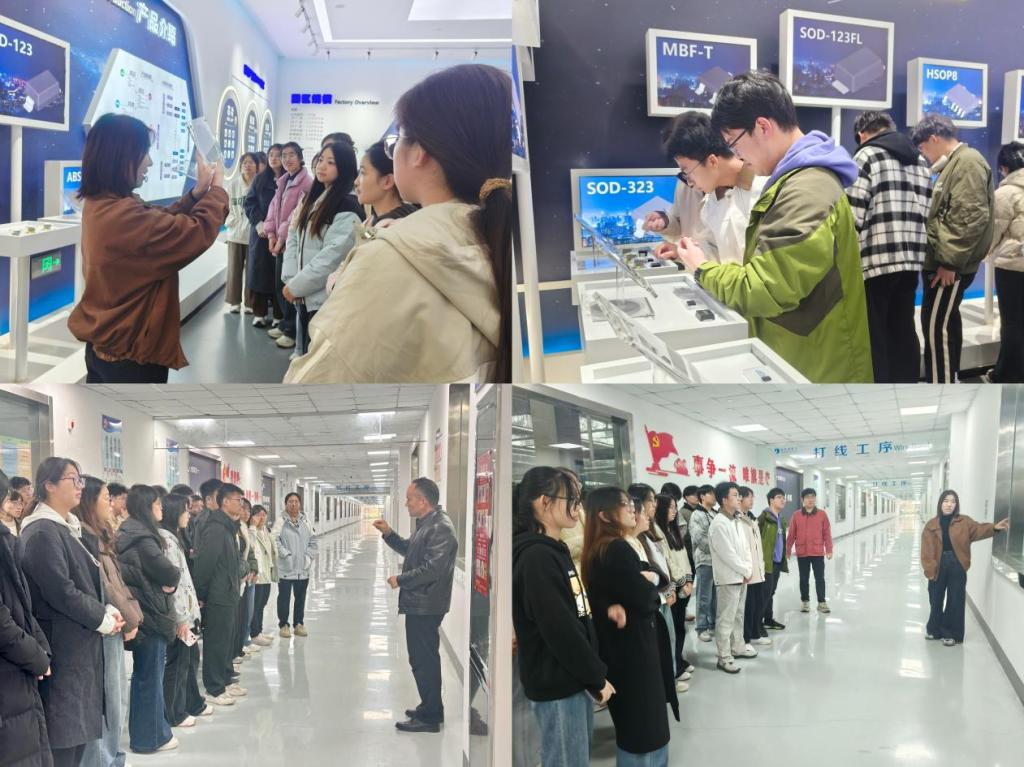 师生们在工作人员的带领下首先参观了樱花动漫墙,了解企业核心理念、发展历程、经营管理及技术产品等相关内容,随后参观了公司的车间,通过工作人员的讲解,近距离观察了芯片打磨、贴片到合成封装的全流程,并学习了制作芯片的工序。最后,工作人员介绍了企业规模与未来布局,耐心解答了同学们关于培训机制、求职技巧等专业相关问题。