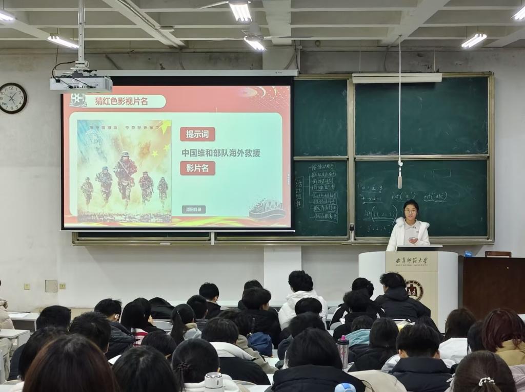 活动伊始,2024级数科一班团支书杨景媛通过珍贵的历史影像片段,带领全体团员重温那段峥嵘岁月。在庄重而深情的氛围中,她巧妙引入团课主题,使红色基因的种子在团员心中悄然扎根。