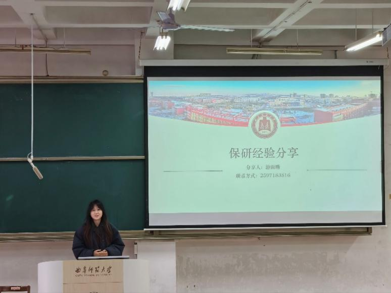 最后,游雨晴结合自己的学习经历,介绍了保研的心路历程,在心态方面激励同学们要有把不敢想之事变成现实的勇气,向着目标不断努力。