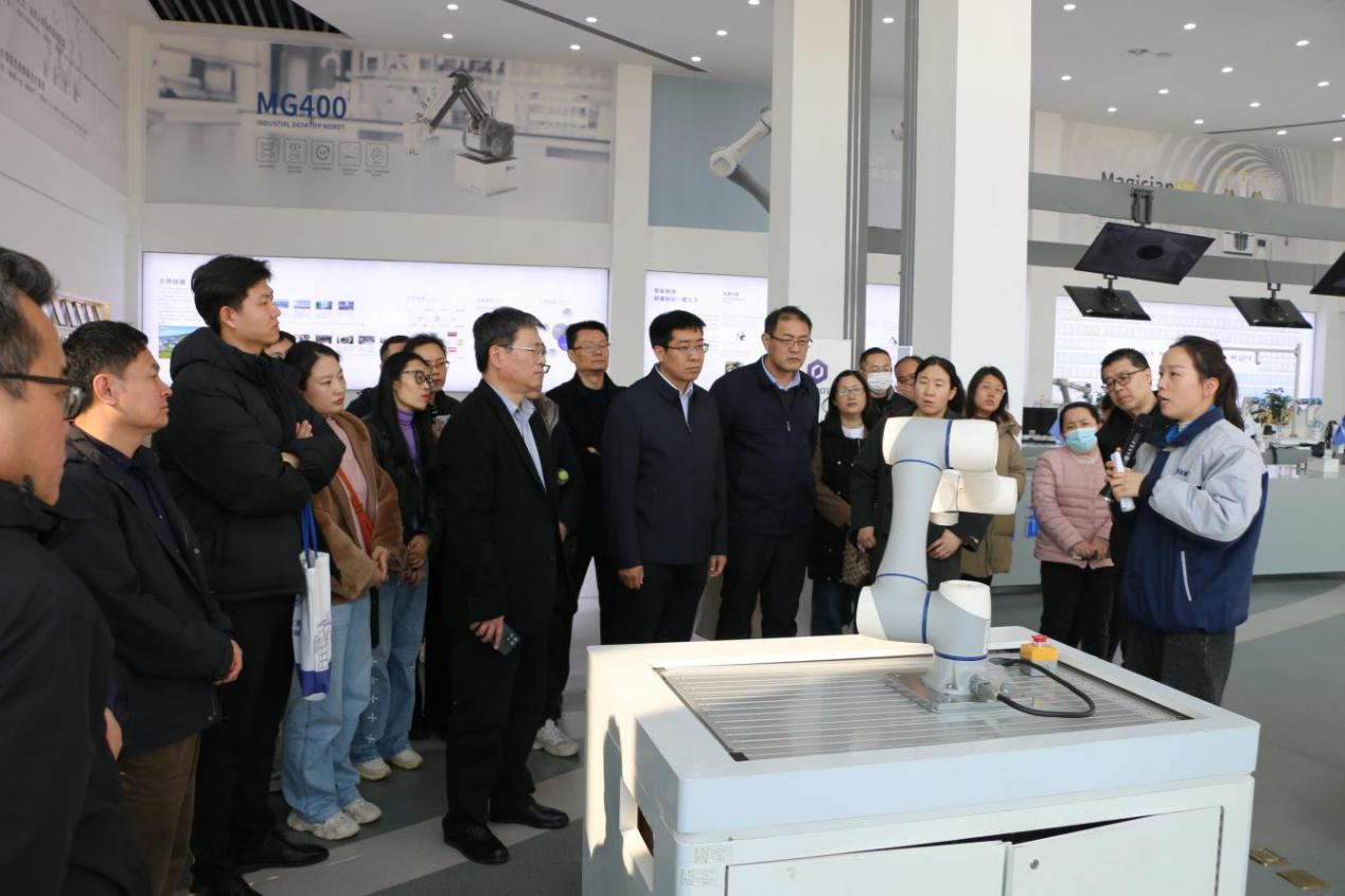 日照越疆智能科技有限公司负责人对刘效武一行的到访表示热烈欢迎,并详细介绍了企业发展历程、核心业务布局及在工业机器人、智能人形机器人领域的技术优势与行业影响力。随后,在企业负责人的陪同下,教师们先后深入公司工业机器人展厅与生产基地,开展实地调研学习。在工业机器人展厅,企业技术人员演示工业机器臂在智能制造、精准装配、物流分拣等多场景适配应用。在生产基地,教师们沉浸式学习工业机器人从核心部件加工到性能测试的全流程生产体系。