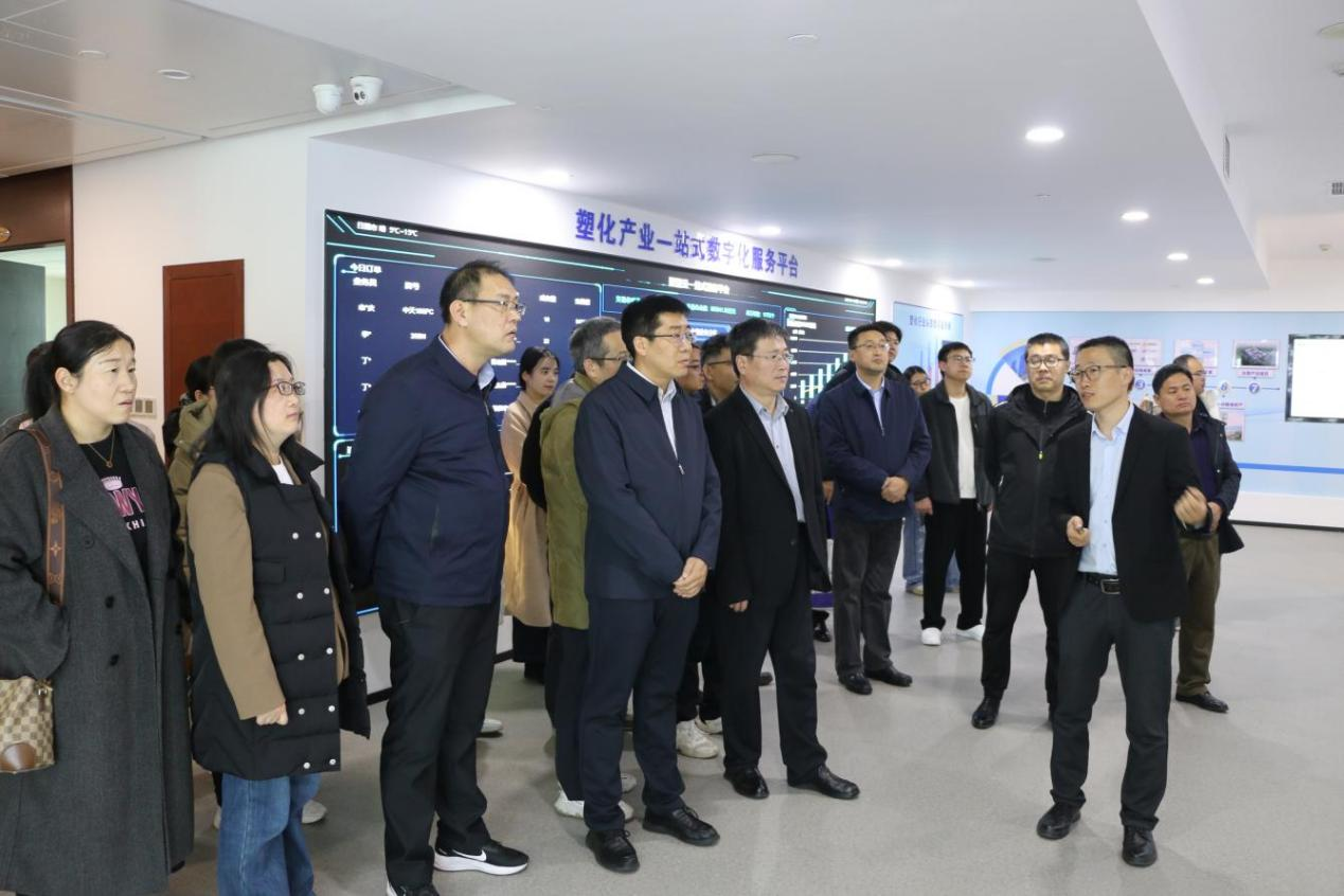 在企业负责人的带领下,刘效武一行重点参观了塑化行业工业互联网平台展示中心。企业负责人详细介绍了山东聚塑云作为国内塑化产业数字化头部平台的发展概况,以及在塑化产业数字经济总部、塑料制品产业大脑等重大项目上的建设进展,同时,负责人提及随着企业数字化转型持续深化,对大数据分析、人工智能应用、软件开发等领域的高素质计算机专业人才需求日益迫切,期待与高校建立深度合作关系。