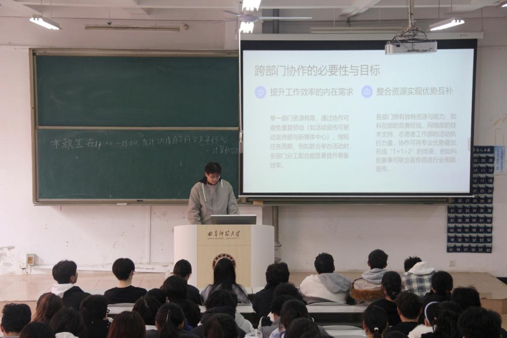 活动伊始,主讲人从学院部门概况与协作价值切入,深入解析核心部门协作机制,结合特色部门协作案例展示现存问题与优化方向,并对未来协作发展提出行动倡议,帮助同学们明晰各部门核心职能与协作逻辑,快速进入学习状态,明确本次培训核心目标与学习重点。