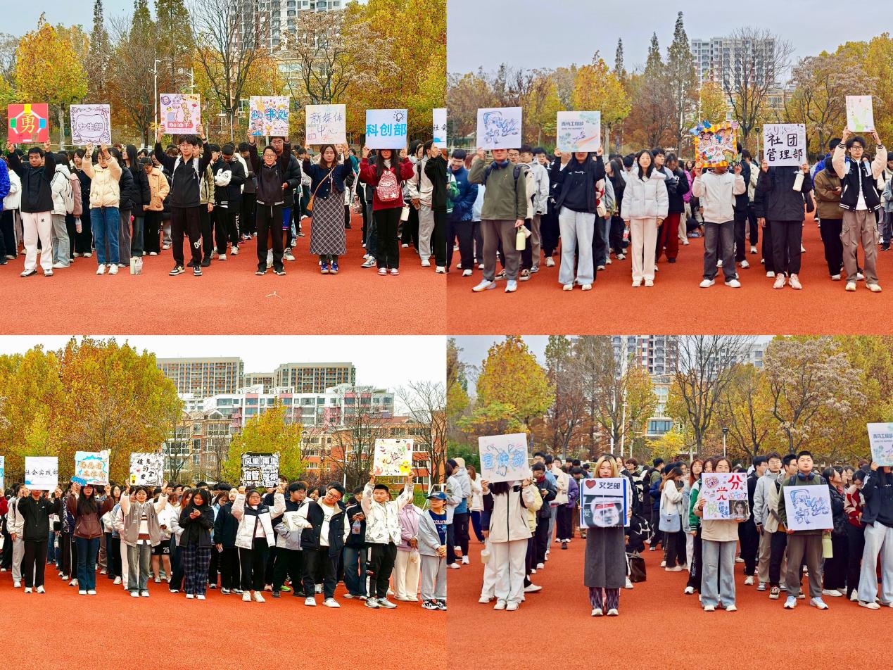 学生会主席杨有源发表致辞。他强调,趣味运动会不仅是一场体育竞技的盛宴,更是一个展现团队精神和集体荣誉感的舞台。随后,运动员代表和裁判员代表依次进行庄严宣誓。各部门领队高举部门代表牌,展示了各自部门的独特特色和智慧。