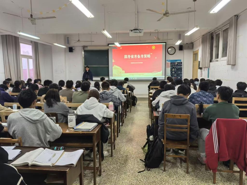 举行以“公考领航”为主题的班级团课活动,23、24级各班学生参与。